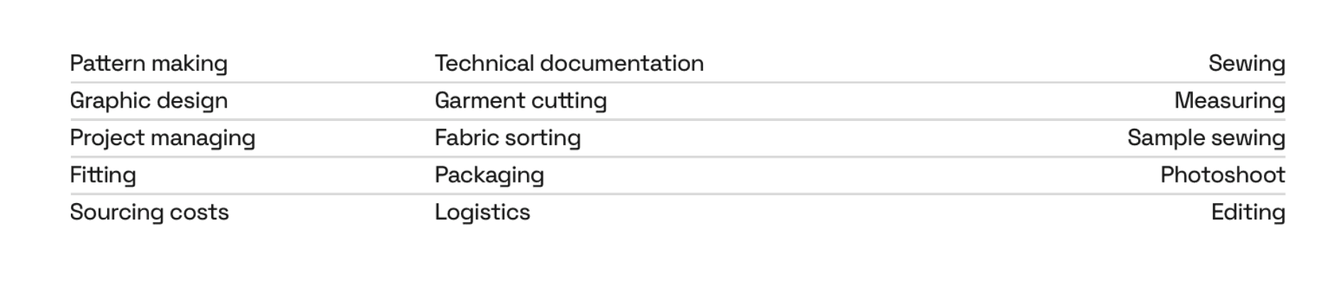 We deliver high-quality/volume pieces for any of your brand needs. Assisting in colour, tailor and production design.